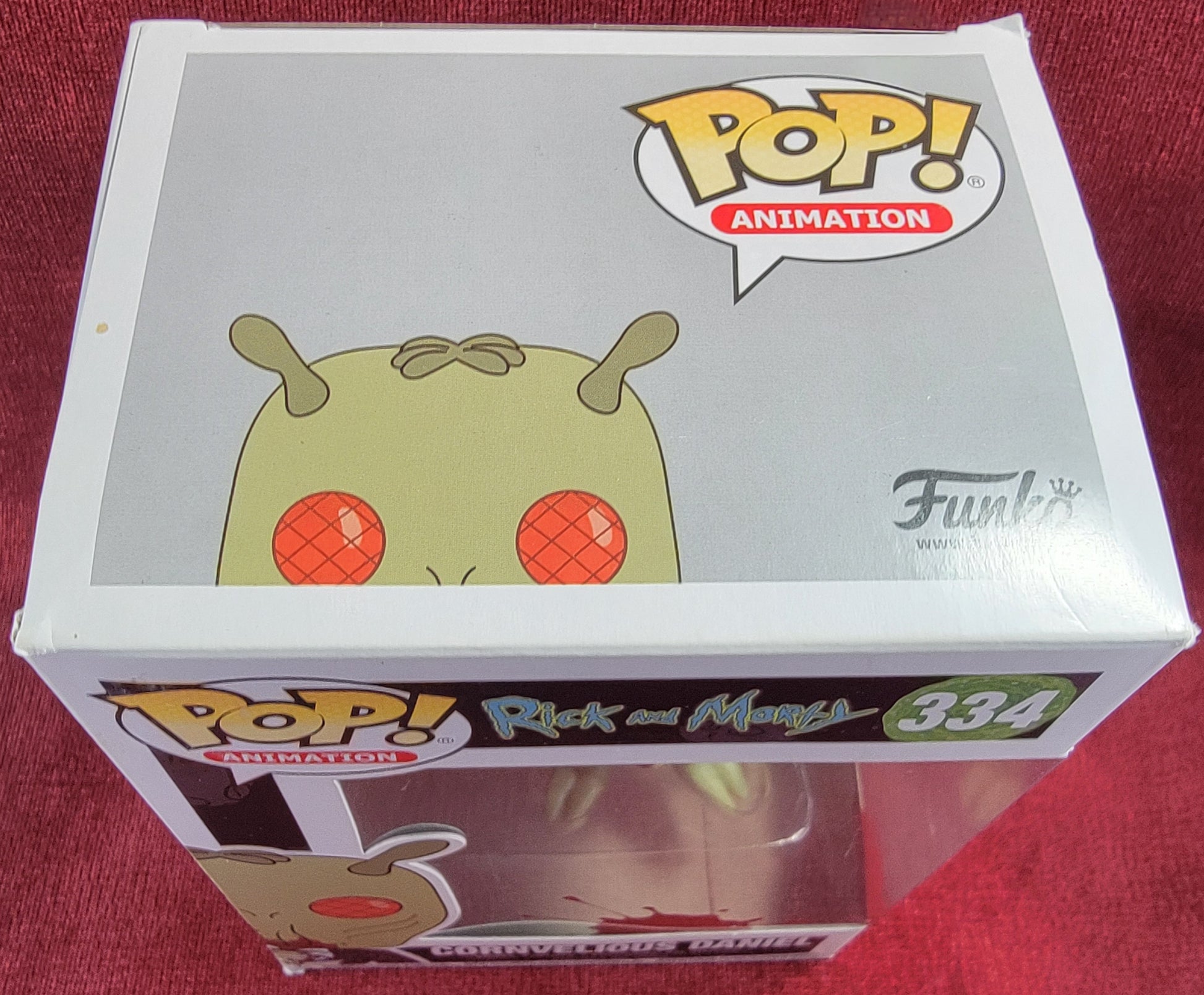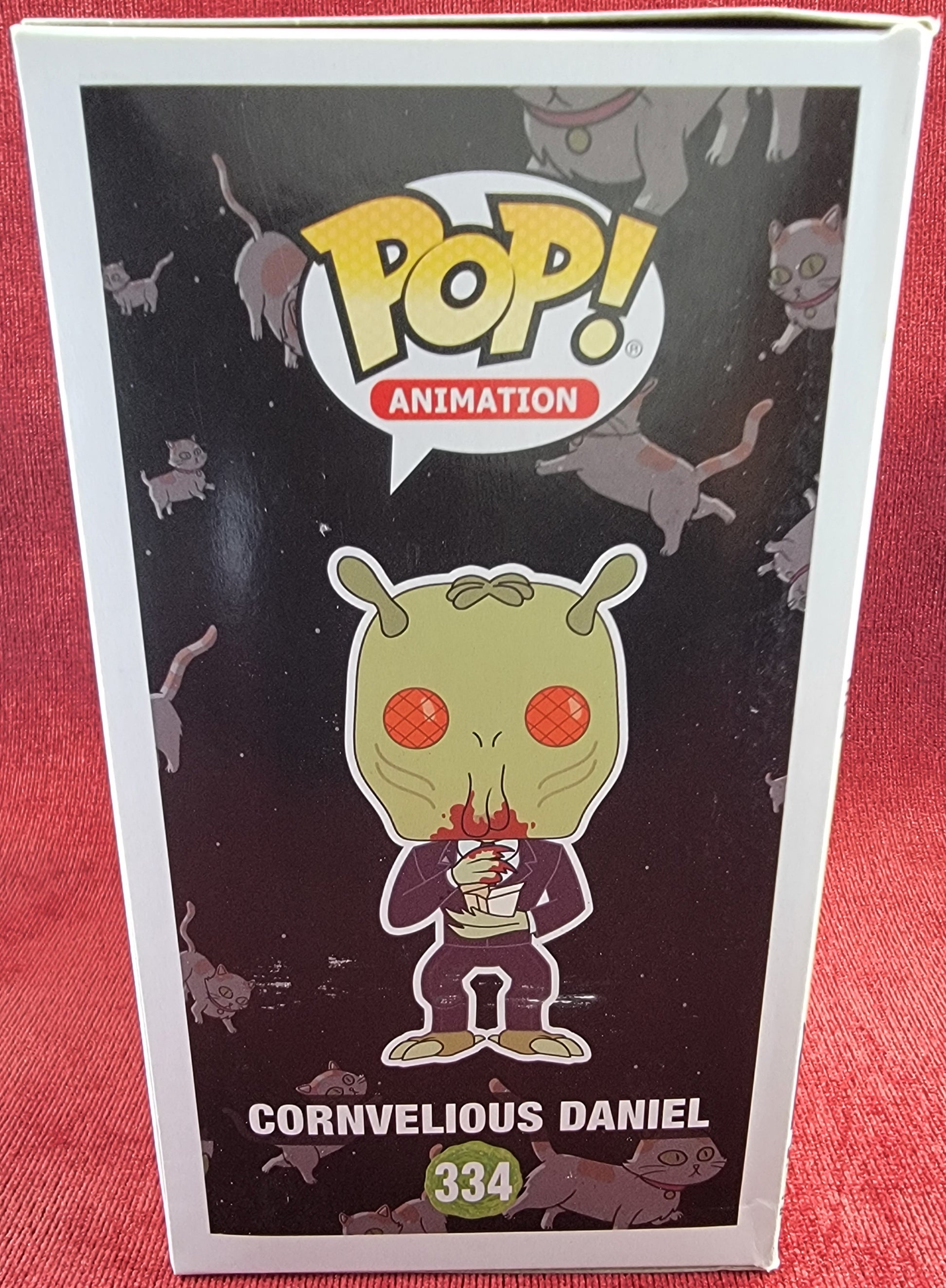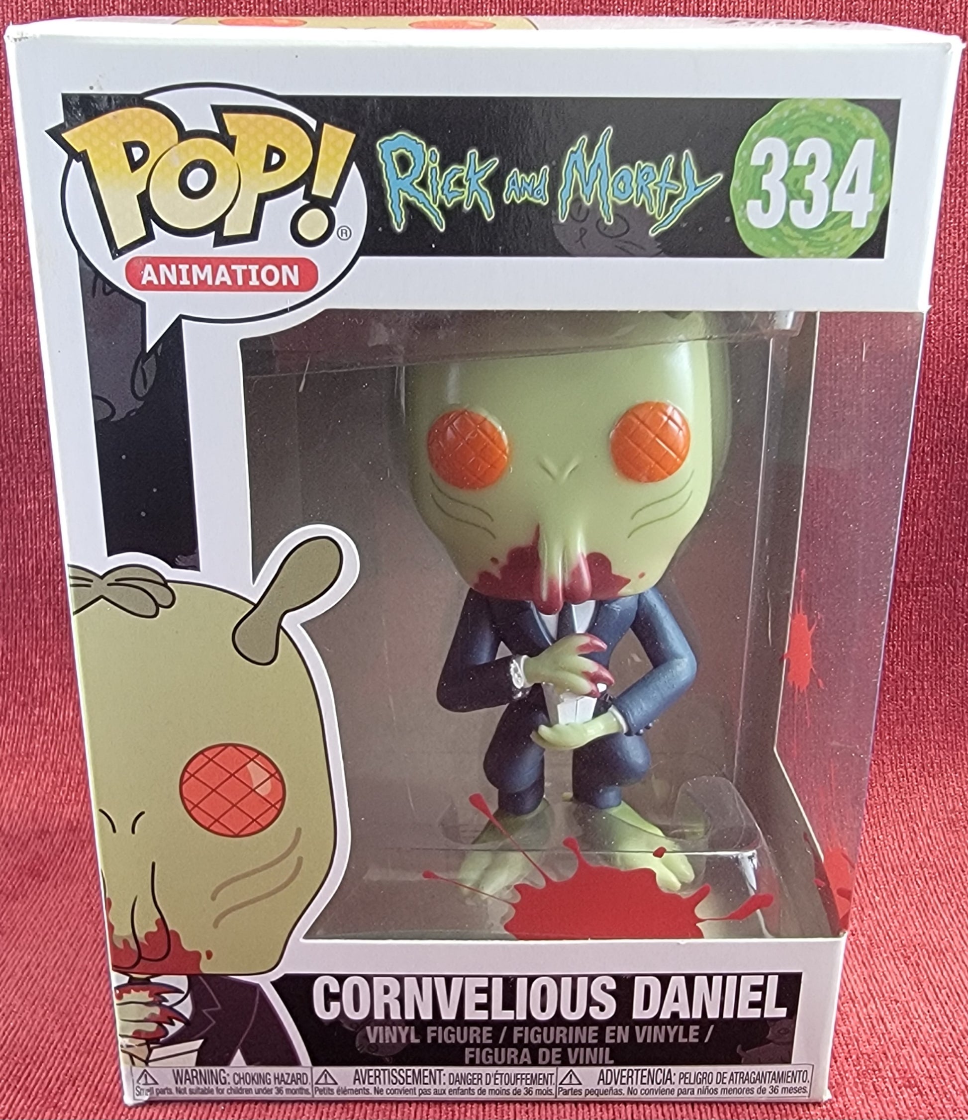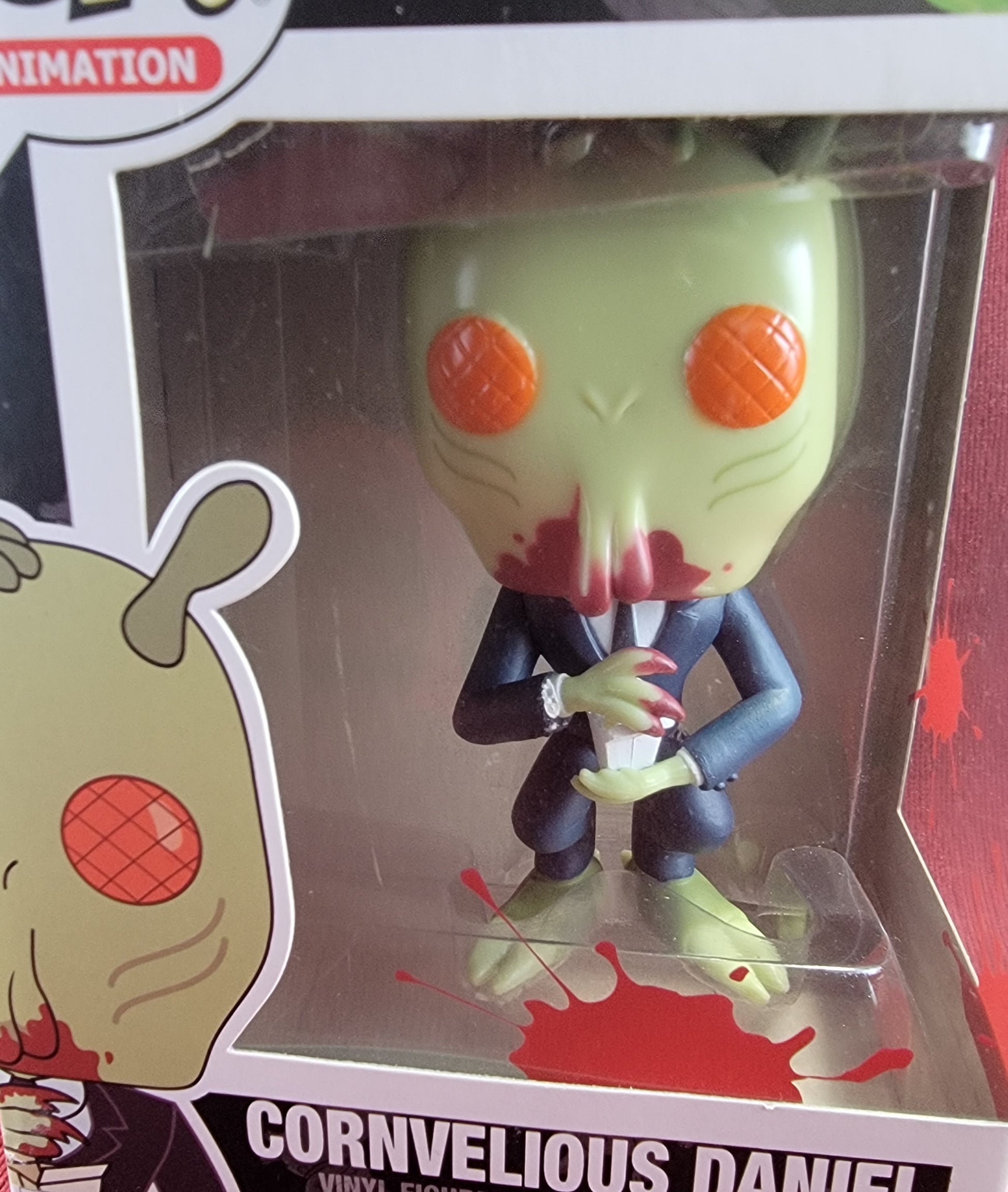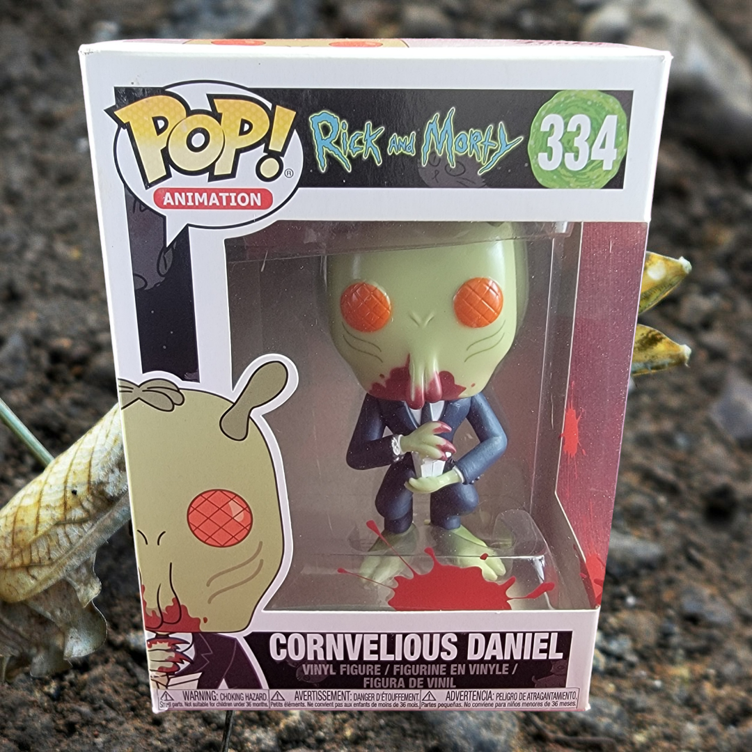 brand new 2018 rick and morty conrnvelious daniel Pop. pop has cornvelious bloodied up and ready to eat. pop has lite scratches on the plastic and slight damage to some of the corners. pop will be shipped in a compatible pop protector.