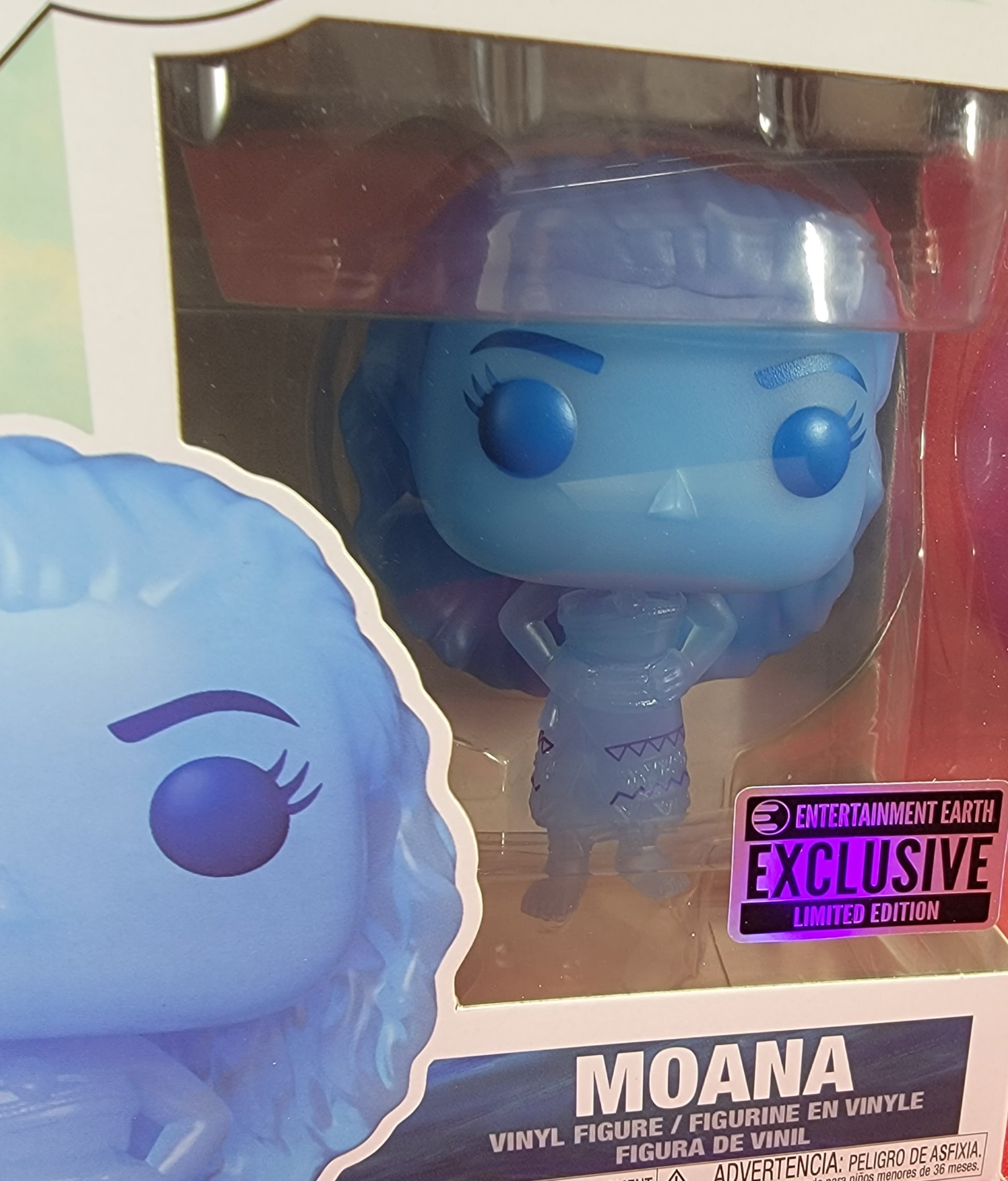brand new disney moana Pop. pop has moana in blue translucent, ready to splash ashore. pop has lite scratches on the plastic and will be shipped in a compatible pop protector.